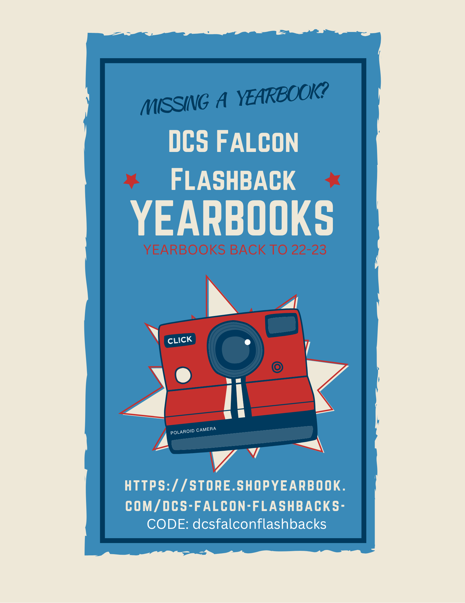 DCS Past Yearbooks (back to 22-23) available to purchase and ship to you! IDCS Falcon Flashback Yearbooks Code: dcsfalconflashbacks